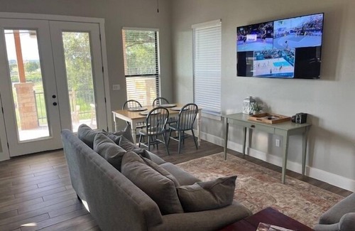 A stone's throw from downtown Fredericksburg, this vacation rental provides convenient access to a variety of attractions and activities. Delve into the town's quaint boutiques, art galleries, and antique stores, or set off on a wine tasting adventure at the celebrated local vineyards. For those who love the outdoors, there are nearby hiking trails, scenic drives, and the spectacle of bats embarking on their nightly forage from Old Tunnel State Park. The rental also includes complimentary 24/7 access to a local gym!