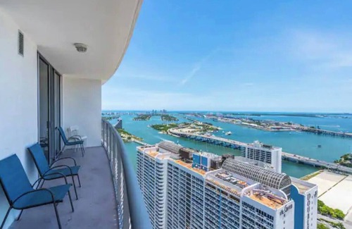 Experience Miami from the 53rd floor in this fully furnished 1-bedroom apartment with breathtaking views of Biscayne Bay and the city skyline. Designed for both comfort and productivity, this high-rise retreat is ideal for business travelers, digital nomads, and vacationers who want the perfect balance of work and leisure.