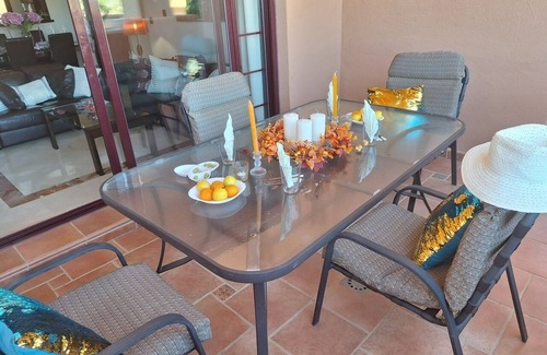 This spacious apartment sleeps up to 5 and is well equipped to the highest standard with marble floors throughout and a fully fitted kitchen, laundry room, spacious living/dining room with flat screen TV. This is a great size accommodation perfect for a family holiday and golf getaway.