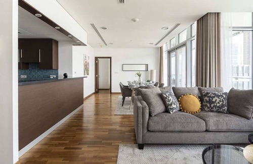 Live in this elegant 3BR Apartment in the heart of Dubai with scenic view of Burj Khalifa only @ Burj Daman - DIFC.