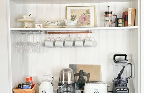 - Coffee station (drip + French press) + wine bar essentials
