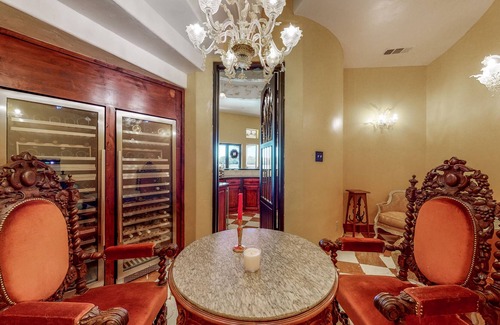 An exclusive gated retreat, this opulent estate offers a gorgeous stay in an Italian-designed castle with 11-inch concrete walls and custom glass fixtures from Murano. Set on a working cattle and horse ranch, this getaway offers a unique stay - schedule a time with the owner to visit the barn and learn about the ranch! You’ll also enjoy lavish amenities, like a private rooftop deck with an outdoor kitchen, alfresco dining, and a wood-burning fireplace - all highlighted by sweeping ranch views.