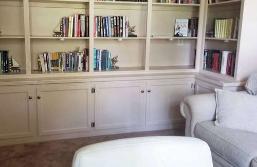 Up your Zoom game with an elegant, private study and beautiful bookshelves for background and lots of desk space. High speed WiFi throughout and two desks upstairs, too. Just be sure to leave time to play & relax!