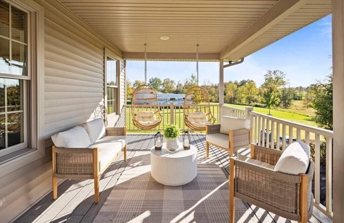 Welcome to our spacious upscale home in charming Chester, NY. This 7-bedroom property features luxe outdoor living spaces for ample privacy and relaxation, with a stunning pool, porch lounge area, and covered dining for al fresco meals.
