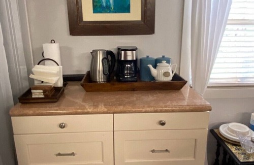 *Microwave, coffee maker, small refrigerator and kettle/utensils for beverages.