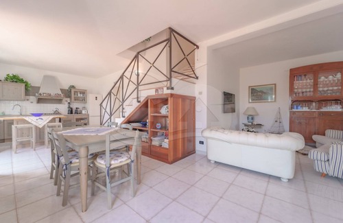 The villa offers a total area of approximately 200 square meters, of which 150 are excluding uncovered areas. The décor is refined and elegant, combining sophisticated and chic elements with the rustic, lived-in charm typical of shabby chic style. This style is characterized by a mix of elegant furniture pieces and delicate colors, giving it a welcoming and timeless feel.
