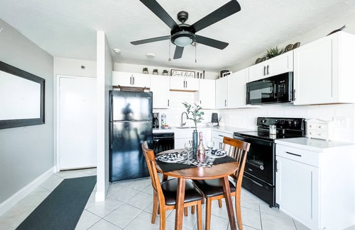 The unit boasts a completely remodeled kitchen with quartz countertops, brand new appliances including a dishwasher (very rare), brand new living room furniture, and new A/C and unlimited music surround sound streaming via Amazon Alexa and Apple Music. Playing your favorite tunes, sounds, and podcasts will no doubt create the ELEVATED experience you are coming for!