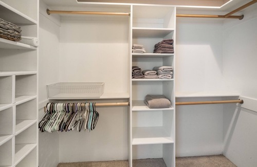 BEDROOMS & BATHROOMS: Elk Grove comprises a master bedroom with a king bed, his and hers sinks, and a beautifully tiled shower on the main floor. Adjacent to it, there is a second bedroom with a queen bed and a full bath that includes a shower/tub combination. A third bedroom with a queen bed and desk is also located on the main floor. Downstairs, there are two more bedrooms, each with a queen bed and a shared full bath in the hallway with a shower/tub combination. Every bedroom has a spacious closet.