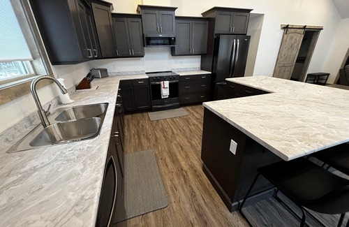 This 5-bedroom 3-bathroom 1900 sqft home is sure to make any size group feel comfortable. The unique L shaped island located in the large open concept kitchen/living room area creates a fantastic place to gather to socialize!
