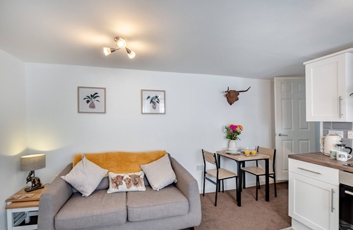 Set in a peaceful mews just a short stroll from Rothbury’s bustling high street, this ground-floor apartment offers a lovely base for one or two guests. Rothbury is a charming market town with a great mix of independent shops, pubs and places to eat – all within easy walking distance. You will also find an 18-hole golf course and outdoor tennis court nearby. Walk to the National Trust’s Cragside House to visit this masterpiece of late 19th-century architecture and stroll through its extensive landscaped gardens, then travel to Brinkburn Priory and Manor House, to see a complete monastic church in an enchanting setting. Walkers and cyclists will want to head into the surrounding Simonside Hills for long hikes and trails. Magnificent Alnwick Castle is just 12 miles away, and the coast at Alnmouth is 16.5 miles, where there’s a sandy beach, an excellent golf course and a pretty village to explore. From the shared entrance, step through your front door and into the open-plan living space, where you’ll find a modern, compact kitchen that contains everything you’ll need to prepare holiday meals, including a fridge with an ice box, and a microwave. There’s a dining table by the window and, when you’re ready to relax, comfortable seating and a Smart TV. If you don’t feel like going out, you can spend the evening watching a favourite movie or two. Five steps lead up to the double bedroom, with its artwork and pretty linens. This room also boasts a Smart TV and has open hanging space and a chest of drawers. An en-suite shower room completes the interior. The pretty courtyard, shared with the sister apartment above, has outdoor furniture for enjoying the fresh air and sunshine, perhaps with some drinks or snacks. You can also store your bikes here safely. There’s roadside parking (subject to availability), with free off-road parking just 20 metres away.
