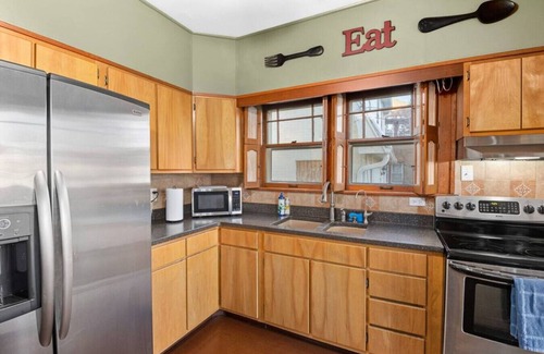 Centrally located, be in the heart of it all! Nestled on a quiet street in a charming neighborhood, this spacious home will provide comfort for your entire traveling group. Feel at home with cozy furnishings, full-service kitchen with Reverse Osmosis, and all the necessary toiletries to make your nightly stays convenient and easy.