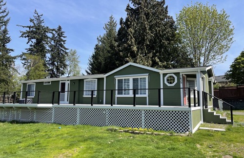 Imagine coming home to this peaceful, modern dog friendly, home with private hot tub, fantastic deck, and woodstove. This single-story home sits on a grassy piece of property lined with evergreen with a view of the Olympic mountains in the distance. Located In the city near everything you need, but secluded and private. The house has been upgraded for the conford of our guests. New kitchen with stainless steel appliances and all the necessary to cook a nice family meal. Special fixture of this home is the exterior lighting that makes it a romantic and special spot diring night time. Whether you are spending a week or weekend at our wonderful home, you’ll find several spots for the entire family to relax and unwind. I love how everything was designed to be easy to use in with such high standards.