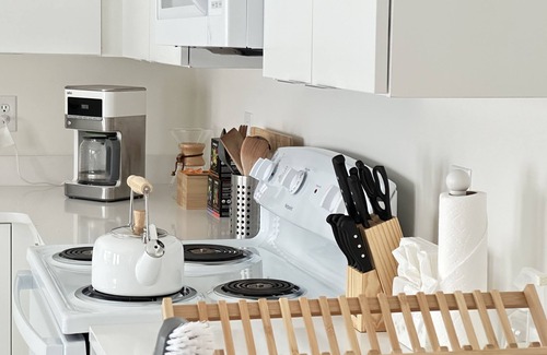 A spacious retreat (780 sq ft.) in Park Circle: Elegant, gracious + charming. Brand new custom built guest house designed with a nod to classic Charleston architectural influence: open concept indoor - outdoor space to large shady screened porch where a perpetual breeze from the not-too-distant coastline blows gently all year round. Visitors will return from their travel deeply restored and revived - having experienced well-appointed accommodation. It has a spacious open concept living, dining, porch + outdoor dining. It is bright, breezy, quiet but also cozy & even 'delicious'. We thought of all the things that makes living in Charleston inspiring + condensed it into a single guest cottage so that those who aren't fortunate enough to live here, can grab an escape 'to their Charleston retreat' anytime. The bedroom is also bright, clean + airy with an emphasis on deep comfort + sumptuous simplicity. The bed is a modernist in style but traditional in construction queen size with sturdy custom built box spring and a 14 inch Simmons Beautyrest Firm mattress with pillow and generous memory foam topper. Sturdy enough for larger folks & soft enough for the tenderest sleeper - all will feel solid support + deep comfort. There are six pillows (memory foam, soft and firm to choose from) There is also a queen sized sofa-sleeper in the living room with its own 100% cotton comforter sheet set + pillows.The full sized bathroom is bright with plenty of natural light (wall installed magnifying mirror + large vanity mirror) but entirely private with top-down window shade. A walk in shower w/ infinite hot water provides the perfect spa like experience to include fresh white fluffy towels, & complimentary premium beauty - environmentally conscious amenities. There is ample storage in a walk in closet, 6 drawer dresser - with tons of unused space in the kitchen cabinet area. There will always be spring & sparkling water provided in the refrigerator, fresh roasted coffee for the BRAUN drip coffee maker or keurig and single serving half & half ready for guests as soon as they arrive! (Sugar + Stevia options included)