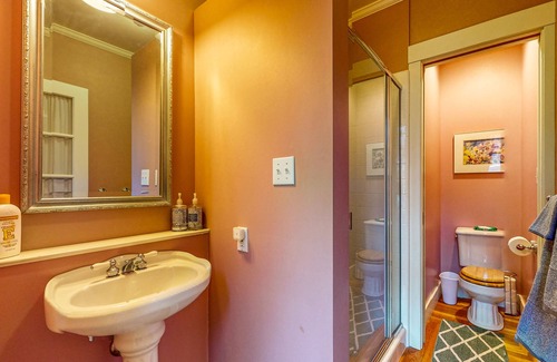 A thoughtfully designed layout has two suites on each floor - all with private bathrooms and one with an opulent clawfoot tub.