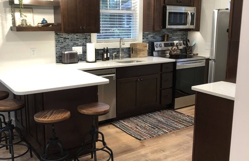Enjoy a small town experience at this centrally-located cottage in the mountains of Western North Carolina. Located across from the Ecusta Trail greenway. Completely renovated, this stylish bungalow features an eclectic interior with vintage touches, as well as all the modern conveniences, including full kitchen, washer/dryer and fast wifi. Venture out for a walk to restaurants and shopping in Historic Downtown Hendersonville. Simply cross the avenue to enjoy a delicious beverage at a quaint coffee shop and a local park that includes a playground.