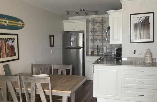 Condo is same level as beach walk and only one staircase up from the parking lot! Recently renovated unit with wood floors and a private balcony. Second unit from beach walk. Very close to pool but far enough away so not to hear the noise. Fully-equipped kitchen. TV/DVD in family room and bedroom. Washer/dryer. Push-button keyless entry which eliminates the hassle of keys! Our condo is in excellent condition and very convenient. The beach is beautiful, peaceful, and family-friendly.