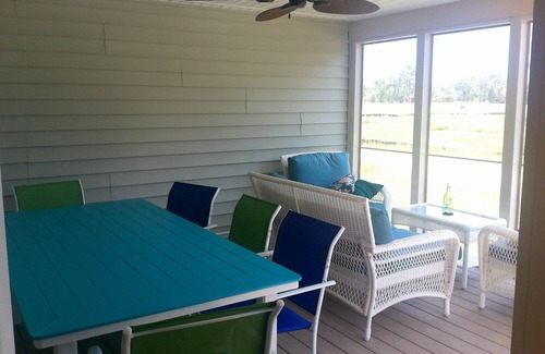 Beautifully appointed 2,800 sq. ft. villa ready for your stay. Sleeps 8 with 1 king, 2 queen, 2 twin + queen pullout in oversized loft. Stainless appliances, screened porch, patio with gas fire pit, gas grill, two 60" smart TVs, fireplace, washer/dryer, library in the study with puzzles & family games. Biking/walking trail right out the back door with views of pond. 4 adult bikes available. Pools, crabbing, kayaking, fitness centers all just short walk away. Beach chairs, sand toys ready for use - get to the beach on the free shuttle! New clubhouse, pools, fitness center, gardens, and indoor recreation space opened summer 2018, just steps from our back door! Up to 6 Amenity passes included and 2 additional passes available for additional fee of $50.00 each for the week. Fee payable to the owners, who will arrange for all passes. Passes are required for everyone age 5 and older.