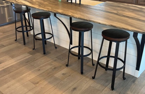 2. Second Master on main: 65” TV, king bed, private full bath with double vanity, walk in tile shower with 2 shower heads and a hand held shower sprayer.