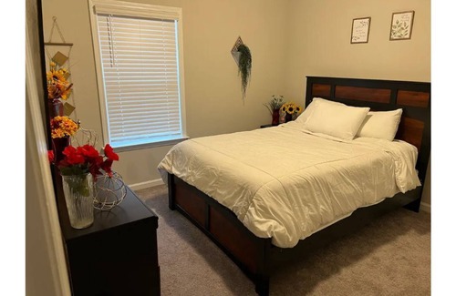 Enjoy a peaceful stay in our beautiful brand new three story townhome. Located in a quiet neighborhood, central to many locations and 25 minutes north of Atlanta! Our spacious townhome provides a comfortable stay for larger group getaways.