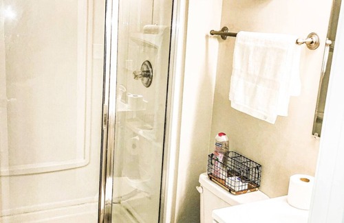 Enjoy peace and serenity and nature views at our fully furnished, clean and quiet stand alone family home. There is ample outdoor space and a deck to enjoy nature or simply soak up the sun. Beautiful, and spacious living area with a fireplace. Fully stocked kitchen. Utilities and WIFI included. Master bedroom has a king bed, the other 2 bedrooms have queen and full sized beds. There is large king bedroom downstairs with a ping pong table. Large tiled shower with rainfall showerhead in master bath. All bedrooms and living room have new smart TVs equipped with Netflix, Amazon Prime, etc. Grocery store and restaurants within walking or driving distance.