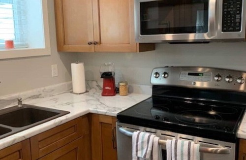 Your suite is completely private and only available to you during your stay. You have full use of the yard and if you wish to play horseshoes or croquet please let us know as the weather has been unpredictable so we have them out of the rain but easily accessible for you. The driveway is yours alone while you are our quest and has parking for 2 vehicles. Extra parking is available on the street out front. The basketball hoop out front can be used and if you would like a basketball available please let us know. We have put tennis racquets and balls in your suite as there is a public tennis court in the park behind us. A quick 3 min walk away.