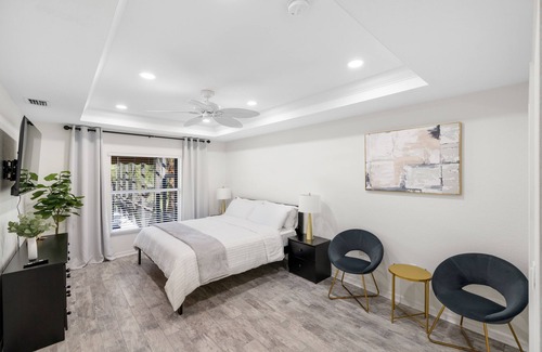 The fully-equipped kitchen is a culinary haven, boasting modern appliances, granite countertops, and an island with barstool seating. Whether you're whipping up a gourmet meal or brewing your morning coffee, this kitchen has: pots and pans, toaster, blender, all tableware, silverware, cookware, drinkware etc.