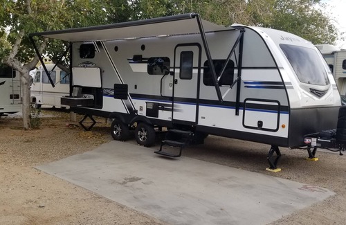 Like adventures? Have a short stay in this non-smoking new 2018 White Hawk ultra-light travel trailer with outdoor kitchen and extra storage. Relax with your family and friends at this safe, private, and peaceful mobile RV trailer park.