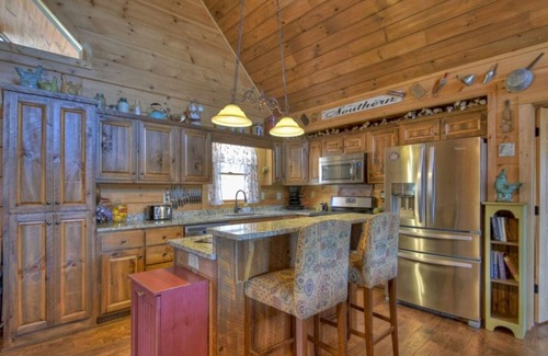 With four bedrooms, including 3 with attached bathrooms, our cabin is perfect for the whole family. The beds in the 3 primary bedrooms have brand new 3-inch Tempur-Pedic mattress covers to ensure a restful nights sleep. The fourth bedroom has queen over queen bunk. The kitchen is stocked with everything you need to create a great meal. Our back deck towers above the trees and provides incredible views of the Appalachian Mountains. Our cabin is so much fun. Downstairs we have a newly remodeled basement complete with a beautiful pool table with ping-pong topper in a Bourbon themed billiards room complete with a gorgeous bar with built-in refrigerator and wine chiller. We have large comfy couches and dozens of games to enjoy a relaxing weekend in the mountains. Our cabin is an incredible place to watch the big game! We have 7 High-Definition TV's (mostly 4k), including one in each of the bedrooms. The TV's are connected to the premium channels cable package and most are smart TV's that allow access to Netflix, Amazon Prime TV or Hulu. You won't miss one minute of the action as you enjoy your vacation. If you need to catch up on work while you are away, we have top of the line high-speed internet with whole-home Plume internet extenders. We have also provided a desk and color printer. You will have great signal in every room in the house, including the gorgeous back deck. Our cabin also has great cell phone receptions for all major carriers You can enjoy the outdoors in our peaceful mountain setting. We have a new deck, firepits, Adirondack chairs and a covered grilling porch. Our secluded cabin is also located near the action. We are within a 10 minute drive of the Ocoee Whitewater Center which has world-class whitewater rafting and ziplines. We are also located only 5 minutes away from downtown Copperhill/McCaysville which packed with great restaurants, breweries, bars and shops. We are also located only 14 miles from downtown Blue Ridge, GA and 28 miles to Murphy, NC. Dozens of hiking and mountain bike trails are located within a few miles of our cabin. Finally, you can reach the new Harrah's Cherokee Valley River Casino in a short 30 mile drive.