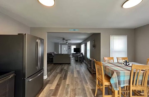 Get ready to relax and take in all the island has to offer. This spacious 7 bedroom is within a short walk to the state park, beach, golf course, restaurant, bar, golf cart rental, carry out and more!! Driveway can easily fit up to 3 fishing rigs with outdoor electric. Closest house to the public boat ramp and a fish cleaning station. 1.2 miles away from main strip for your night life . Must take a boat or airplane to get to island.