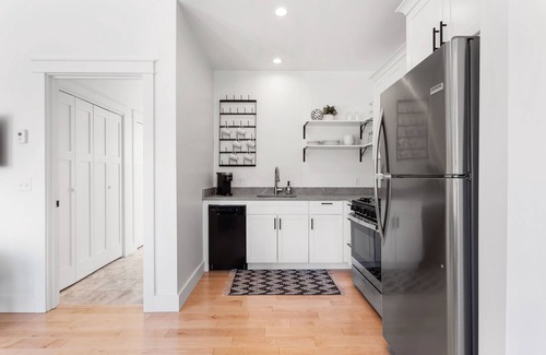 The house was designed with adventure seeking travelers in mind. On the first floor guests have access to two queen bedrooms and two full bathrooms. A new second floor bedroom with a king size bed is a welcome expansion to accommodate larger groups. Our oversized family room is a perfect space to relax, read, watch some television on a big screen, or play a board game with the family! The full kitchen, with many upgraded amenities, stone countertops, gas range, and dishwasher, gives you the perfect space to cook or visit some of our favorite restaurants less than 15 minutes away. A large well-lit deck gives you a tranquil spot to sip your morning coffee and hopefully catch a peek at some woodland visitors. Our washer and dryer are neatly tucked away in the entryway and are essential for washing up after your many outdoor adventures.