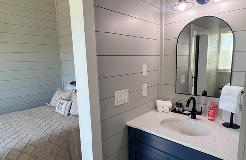 This charming modern farmhouse-inspired tiny home accommodates 4 guests. Enjoy stunning views of the vineyard & valley from shared outdoor spaces, including a pool, hot tub, & fire pit. With 2 bedrooms, full kitchen, & wine country vibes, perfect for wine lovers. Explore the host winery, Toogood Estate Winery wine caves and other nearby wineries to indulge in wine tastings. Unwind with provided entertainment options or simply take in the beauty of the surroundings. Experience a vinous retreat like no other at Toogood. Book now for an unforgettable stay!