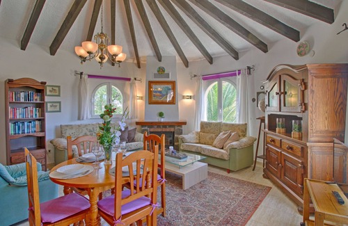 Puerto Blanco: Villa "Estrella". In the district of Canuta Baja 1.5 km from the centre of Calpe, 60 km from the centre of Alicante, 120 km from the centre of Valencia, 300 m from the sea. Private: property 650 m2 (fenced) with wildlife garden and trees, swimming pool kidney shaped (8 x 4 m, seasonal availability: 01.Jun. - 30.Sep.). Garden furniture, barbecue. Stepped path (11 steps) to the house. Parking (for 2 cars) on the premises. Shop 1.3 km, supermarket 1.3 km, restaurant 300 m, bus stop 1.4 km, sandy beach "Playa Puerto Blanco" 300 m. Nearby attractions: Parque atracciones Terra Mítica 35 km, Parque acuático Aqualandia 25 km. Hiking paths: Parque natural Peñon de Ifach 4.5 km. Please note: car recommended. Part of the house is closed and unoccupied. Access to the balcony via external staircase.