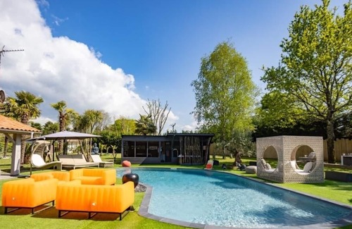 Exceptional villa with heated swimming pool and pool house is located in Benesse-Maremne. Exceptional villa with heated swimming pool and pool house provides accommodation, featuring Private Pool, Internet, Kitchen, among other amenities. This House features Private Pool, Internet, Kitchen, to make your stay a comfortable one.