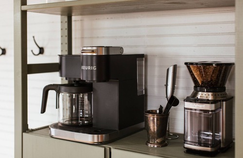 Charming architecture, cozy design, beautiful hardwoods and high ceilings welcome you when you walk into the front door of this gorgeous home. The large kitchen is fully equipped with everything you need to cook your favorite meals during your stay. The modern stainless steel appliances, kitchen island, and spacious dining table make it easy to prepare and share your meals with loved ones. You’ll also find a drip coffee and pod machine, coffee bean grinder, and milk frother so you can enjoy fresh coffee or tea every morning!