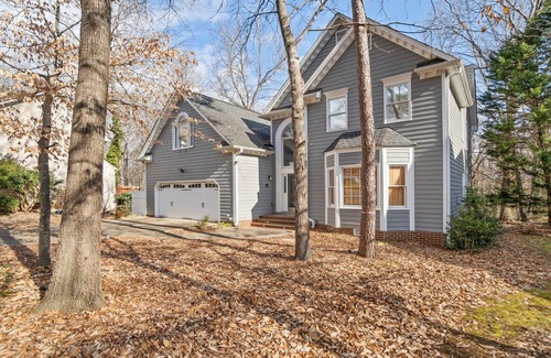 Executive Home. Tucked in a quiet cul de sac on a lot with beautiful mature trees, this 3 bedroom/2.5 bath is located in the Davis Lake-Eastfield neighborhood of Charlotte. It's a short drive to many Charlotte attractions as well as I-77 and I-485. The house features a designer kitchen with soapstone countertops and a soapstone farmhouse sink. Living room leads out to deck overlooking private backyard. 2 spacious living areas, a game room with a ping pong/pool table, comfy beds and smart TVs. Executive level master bedroom with sliding Shung Fui doors connecting them and 2 closet spaces, one walk in. The master bathroom has custom Versace tiling & steam shower, heated floowers, jacuzzi tub. Fully furnished and ready to go!
