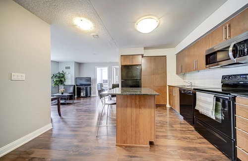 A fully equipped kitchen and en suite laundry facilities are offered in each suite at Mississauga Furnished Apartments with Free Wi-Fi, All units are centrally heated and air conditioned. The fitness centre provide on-site recreational options at Furnished Apartments Mississauga. Free on-site parking is available.
