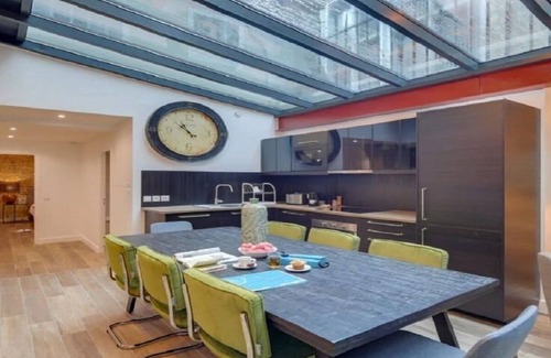 This professionally managed home in the heart of the Sentier district would suit a large group looking for spaces with personality and a central locale. It features a bold look that mixes modern textures and incorporates floral patterns, while an expansive skylight in the main living space provides plenty of natural light, even on the greyest day. With three spotless bathrooms there's plenty of space for the group to spread out.