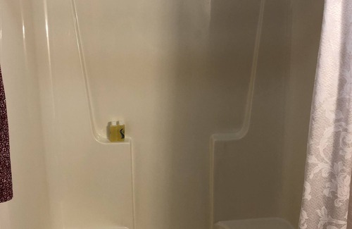 You will have a 12' x 22' room (6' x 8' bathroom). Your room has one queen bed and a comfy leather recliner. A kitchenette with two stove tops, microwave, mini fridge, pots/pans, cutlery, crock pot, coffee pot. The bathroom features a roomy walk-in shower, grab bars, 14" stool, and vanity with medicine cabinet. Pack N' Plays available for infants. Iron and ironing board included.