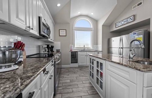 As you step inside, you'll be greeted by a bright and airy ambiance, enhanced by large windows that showcase breathtaking ocean views. The spacious living area is designed for comfort and relaxation, featuring plush seating and a large flat-screen TV, perfect for movie nights after a day at the beach. The gourmet kitchen is a chef's dream, equipped with modern appliances including a refrigerator, oven, microwave, and dishwasher, along with ample cooking basics and a dining area that invites family gatherings. Enjoy your meals while soaking in the stunning views from the deck, or take your dining experience outdoors with the grill and outdoor seating available. Each of the six king master bedrooms is a sanctuary of comfort, complete with ceiling fans and TVs, ensuring a restful night's sleep. The additional bunk and twin bedrooms provide flexible sleeping arrangements for children or extra guests. With its prime location, luxurious amenities, and spacious layout, Turquoise Turtle is the ultimate destination for your next beach vacation. Book your stay today and create unforgettable memories by the ocean!