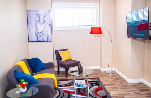 The living room is equipped with a 50" UHD Smart TV with Netflix access. If you'd like to explore the City, you are perfectly located for the best entertainments that is less that 2 mins away. Starbucks, Tim Hortons, Gas Station, varying restaurants are just a stone's throw away.