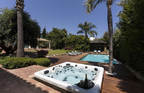 Exquisite private villa with private and heated pool and jacuzzi is located in Sotogrande. Exquisite private villa with private and heated pool and jacuzzi provides accommodation, featuring Ocean View, Balcony/Terrace, Entertainment, among other amenities. This Villa features Ocean View, Balcony/Terrace, Entertainment, to make your stay a comfortable one.