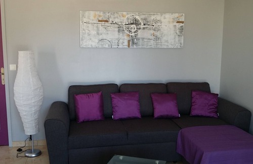 Modern F2 with all comforts including a bedroom with a double bed and a large living room kitchen and outside a terrace.