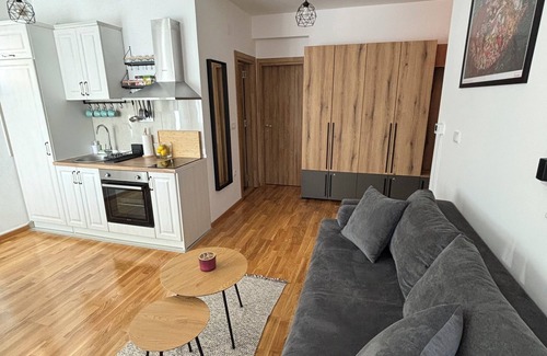 The brand new apartment. Located in the peaceful area, 10 minutes walk from the city center. Furnished to the smallest detail to make you feel at home. Apartment have separate bedroom, lovely terrace and free use of the Spa center that will help you relax and enjoy our accommodation. The living room with a cozy sofa bed offers a delightful space for guests to relax. Iron, WiFi, and a hair dryer are provided for your convenience. The peaceful ambiance of our place is perfect for unwinding after a day of exploring. Our place is equipped for both long or short stays to make your holiday one to remember.