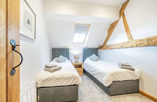 Fabulous, detached barn sleeping eight, with four bedrooms and four bathrooms. This exceptional renovation features a cosy wood burner, underfloor heating, and lovely rural location.. 1 step to entrance.