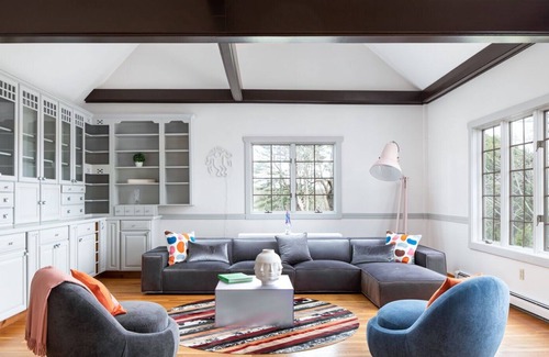 Newly available! Be among the first to reserve this historic home in Narragansett's Sunnybrook Farm. Previously part of the estate of the former Governor Howard J McGrath, this entirely up-to-date expansive colonial is the perfect home for this summer's gathering. The house and its décor are centered on the family's extensive art collection and love of art in all its forms. Art at the property includes rarely seen works from iconic artists such as Alexander Calder, Keith Haring, and Wilfredo Lam as well lighting from the renowned glass designer and artist Alison Berger's rain collection, Angelo Lelli ceiling lighting, and an original 1227 mega lamp from Anglepoise.
