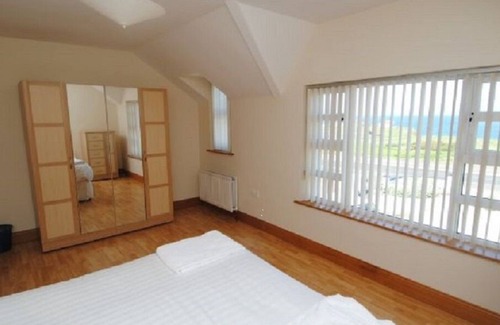 1 kingsize bedroom with sea views, 2 double bedrooms one with sea view & 1 twin bedroom. 2 bathrooms both with showers and 1 bath.