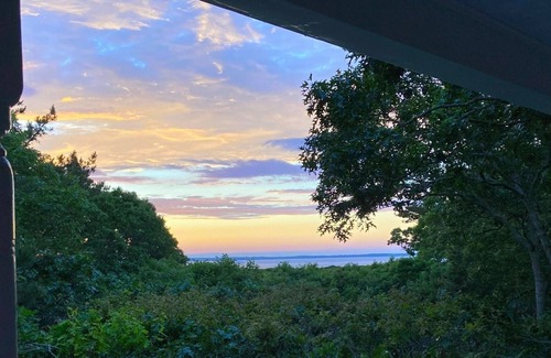 *** OCEAN VIEW!***WALK TO Semi-PRIVATE BEACH!! (residents only)** *****This OCEAN VIEW Historical 1891 Victorian home is absolutely charming and loaded with character. Located in the quiet, wooded, very desirable Lower Makonikey neighborhood - just a short 4 mile drive to town and the ferry. ONLY a 5 MINUTE WALK (0.2 of a mile) to the residents only beach on Vineyard Sound, with parking available .Only 1 mile from Lambert’s Cove/West Tisbury Town Beach. This home has two floors, lots of windows, high ceilings and hardwood floors throughout. There is a huge wrap-around porch and a back deck, with an outdoor shower, new gas Weber grill,2 chaise loungers, cocktails table, also two dining tables ( 6 person and 4 person table), wicker rockers .The spacious, open living room has built- in window cushion seating with a wall of windows. ** There is a hammock to relax in the yard. Wi-Fi with Roku. Laundry room on 2nd floor. Lamberts Cove walk-on beach pass available after July 1; vehicle passes to Lambert’s Cove Beach tenants must purchase from the town.