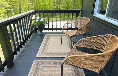Escape to this peaceful, pet-friendly hideaway in the Vermont woods. Hike colorful trails, bike nearby mountain resorts, golf at Fox Run, or enjoy local fall festivals. After the adventure, unwind by the fireplace or toast s’mores around the fire pit.