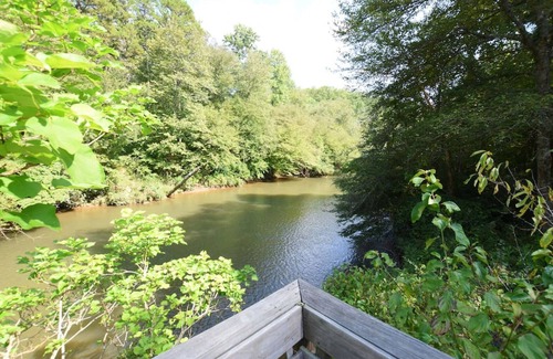 This very unique home is on 6 acres of pure beauty. It provides spectacular views throughout the entire home that is overlooking the river and 150' waterfall. These beautiful views can be seen from the living room, den, kitchen, master bedroom, master bath with large shower, lower screened porch that has rockers for your enjoyment. The waterfall can be heard throughout the home which makes for a magical serene atmosphere! The owners have recently added fire pit at the waters edge if you like to roast marshmallows, tell stories or just enjoy a camp fire environment. There are steps that lead down to the river which makes for an easy and short walk and provides lighting in the evening.