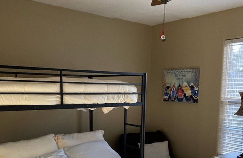 • 3 Bedrooms (2 queen bed one full with twin bunk on top)